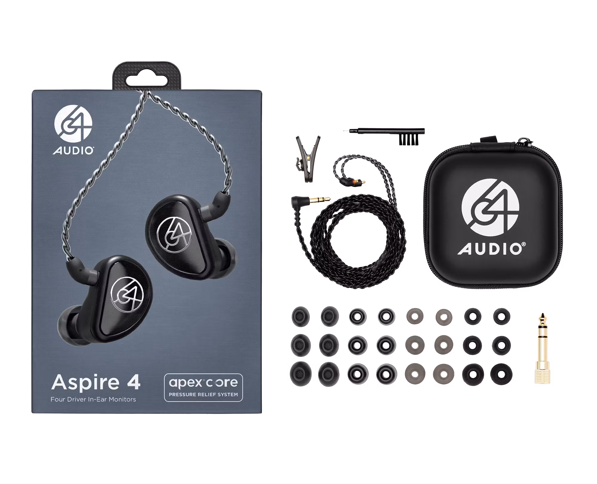 Aspire 4 är toppmodellen från 64 Audio med fyra drivers och högsta detaljrikedom. För professionella musiker och krävande livesituationer.